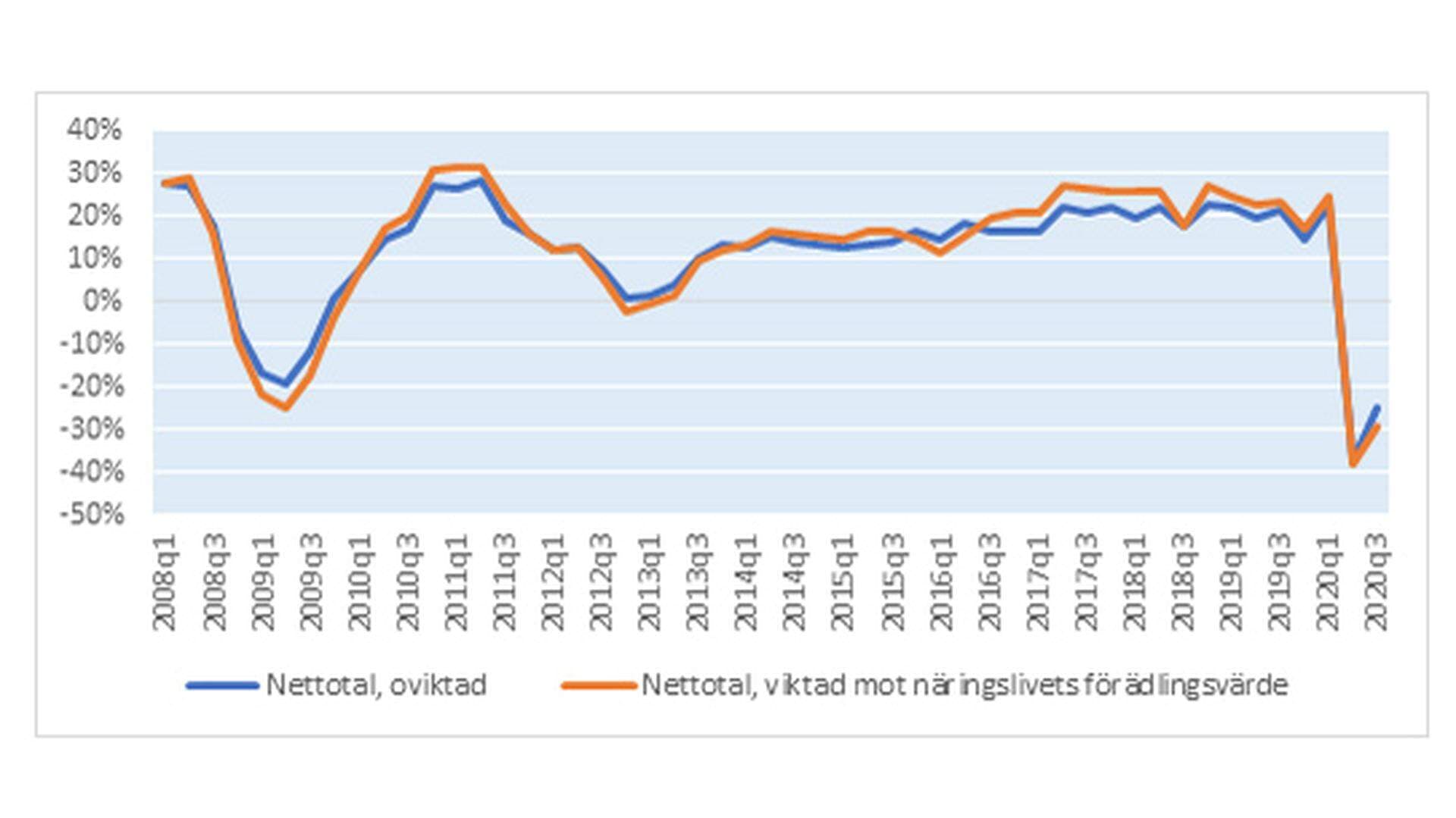 Näringslivets investeringar jämfört med sex månader tidigare